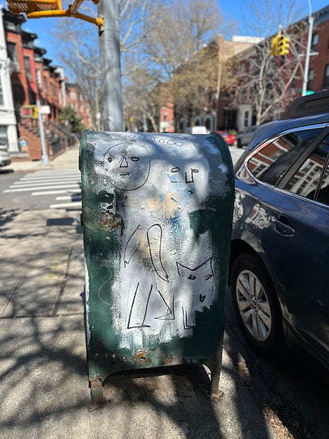 Back in 2022 when the pandemic was still lingering, I remember noticing these faces painted on mailboxes, parking meters, emergency call boxes, and elsewhere as I walked around Park Slope. Every day, I’d spot a new one, and more and more would pop up daily - each new one bringing a little burst of joy to my day. It became something I looked out for whenever I left my apartment.