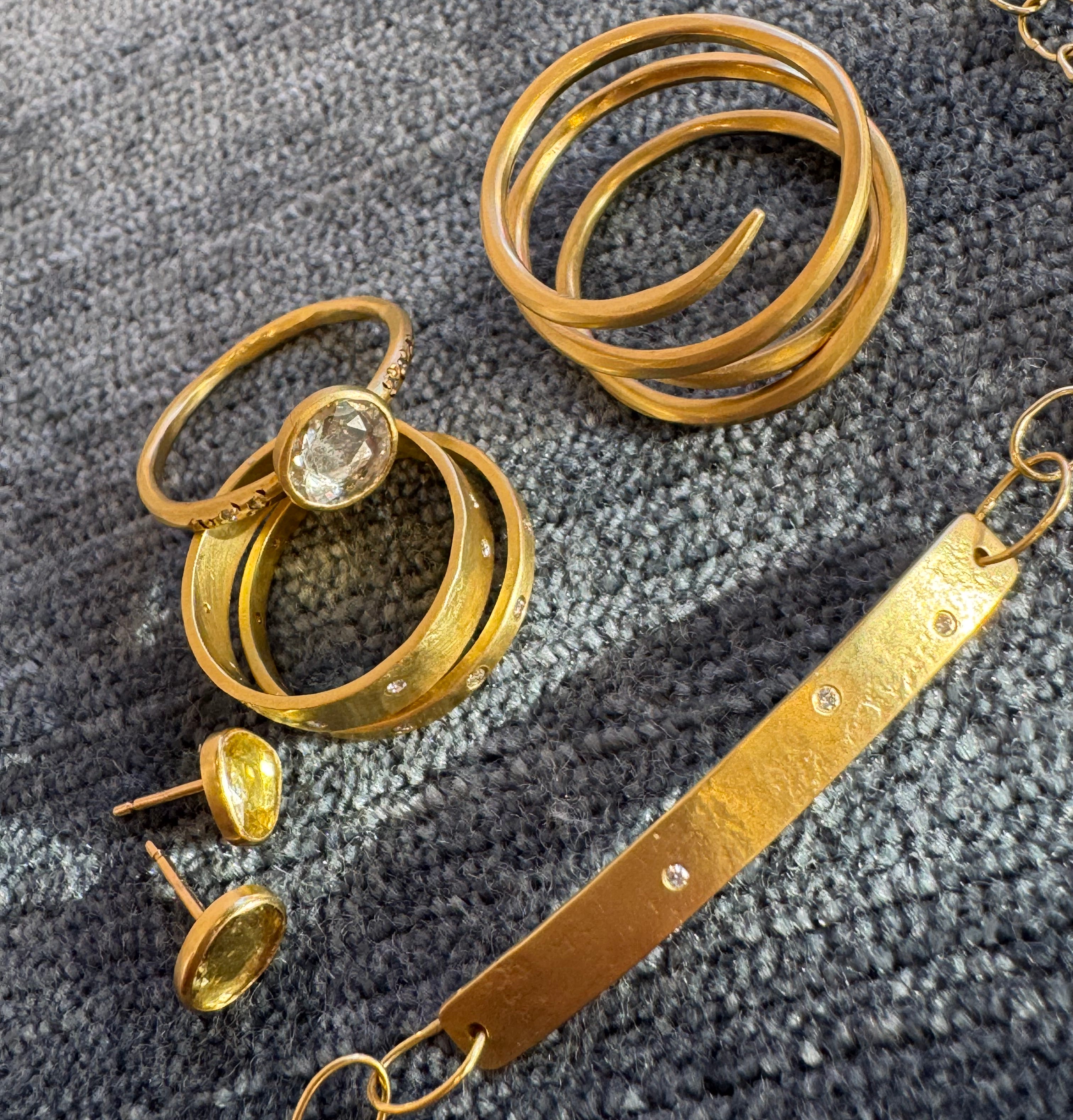 Sarah’s work celebrates organic forms and meticulous craftsmanship. Inspired by natural landscapes and modernist design, she hand-crafts each piece using recycled gold and silver to create jewelry that is beautifully and thoughtfully made.