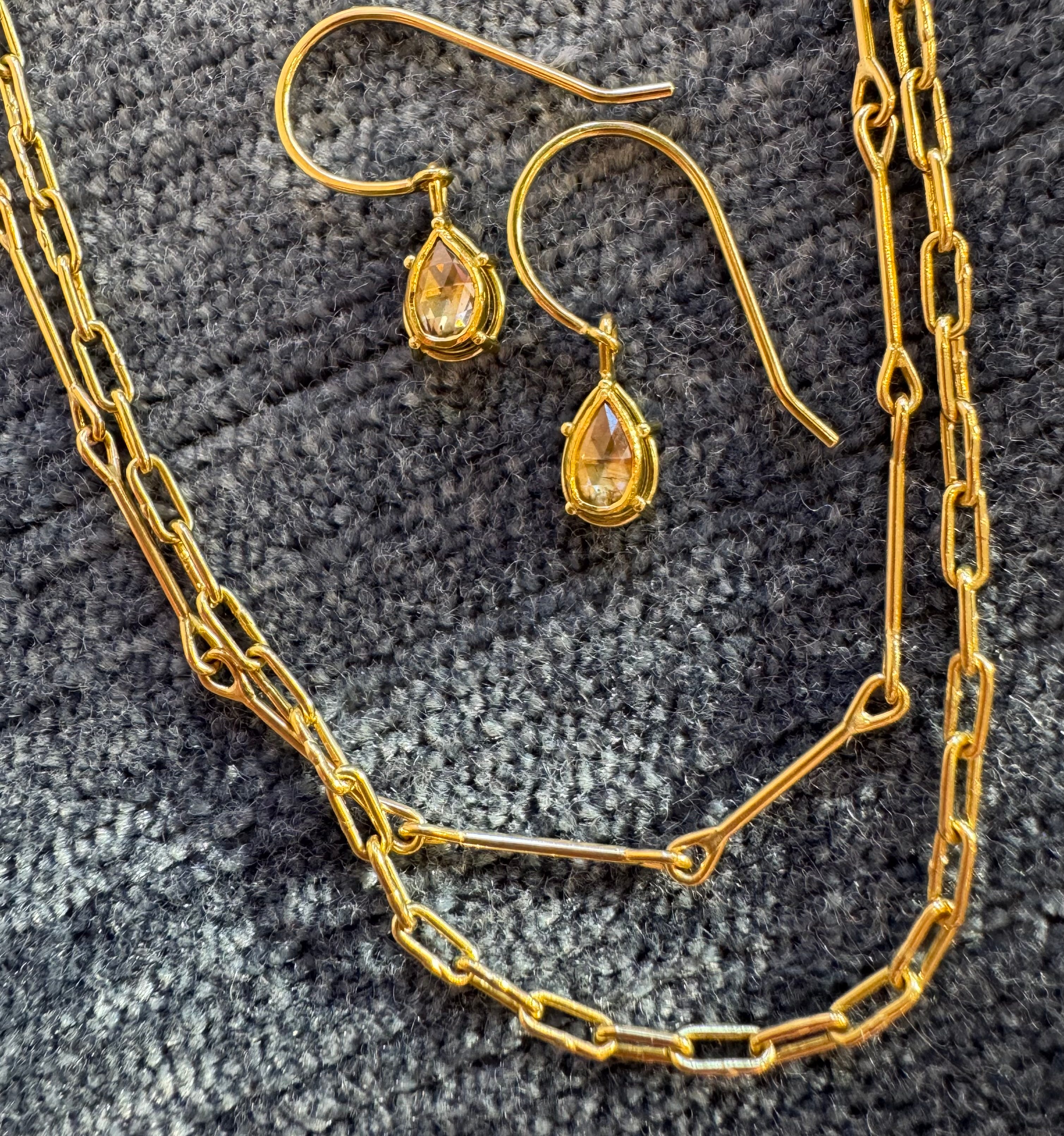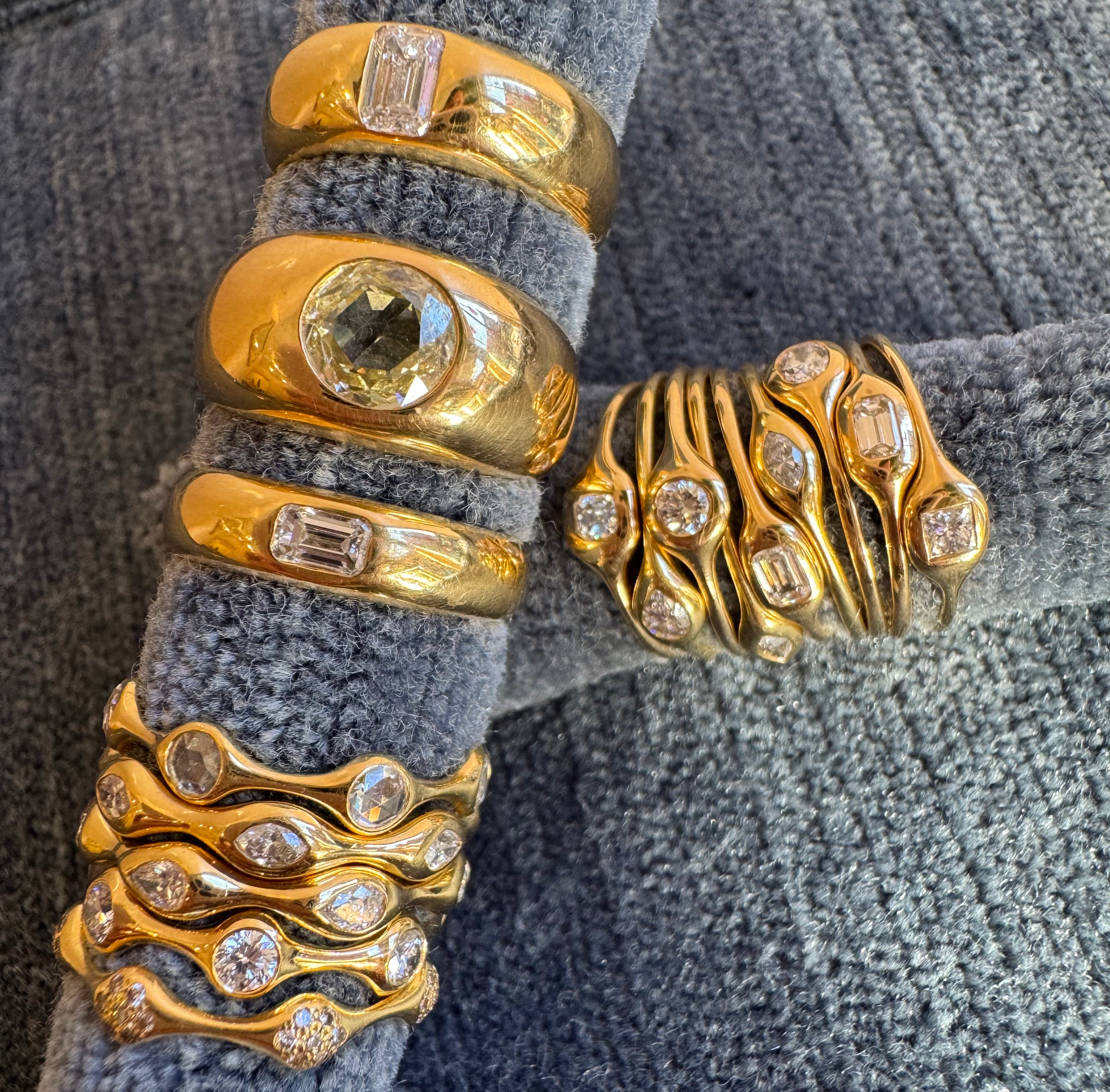 Diana blends her architectural eye with craftsmanship to create modern fine jewelry that feels both sculptural and wearable. Her pieces are hand-crafted in 18k gold and diamonds with thoughtful attention to form and movement.