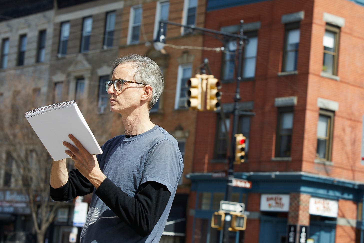 When he drew Junior’s in Downtown Brooklyn, he stood on the traffic median in the middle of busy Flatbush Avenue. “It was so much fun. It gave me a great vantage. I get into this kind of flow state where I’m not really aware of my surroundings, so I always have to be near a piece of street furniture, like next to a pole or a bus stop. On the traffic median I felt totally safe because there was nobody walking by,” he recalls.