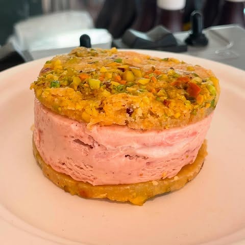 Heap’s Ice Cream collaborated with Sawa to create a delicious summer ice cream sandwich! Strawberries & Cream ice cream meets a pistachio, rosewater, orange zest, & semolina cookie, inspired by two of Sawa’s signature desserts. Yum! Available at Heap’s for a limited time.