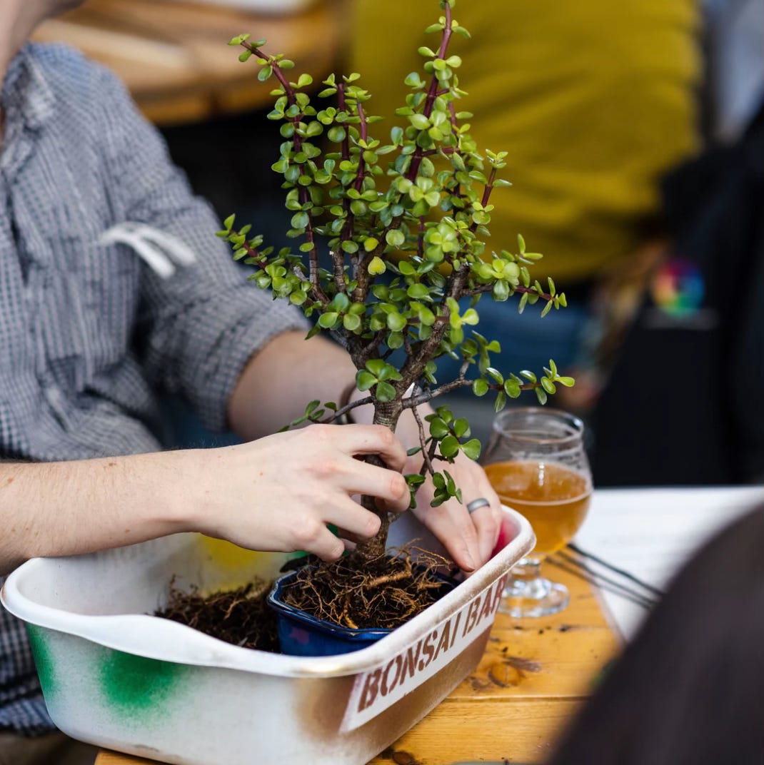 - Bonsai Bar @ Strong Rope Brewery (Gowanus), 6:30pm: Bonsai Bar Beginner workshops are perfect for you to grab your friends, grab a drink and come make tiny trees! Learn the fundamental skills and techniques behind the art of bonsai. Teachers will introduce core concepts and guide your experience as you pot, prune, and design your very own bonsai tree! Included in the ticket price is a tree of your choosing, a ceramic pot to replant your tree, and two hours of bonsai wisdom. $85.  - 📸: Bonsai Bar