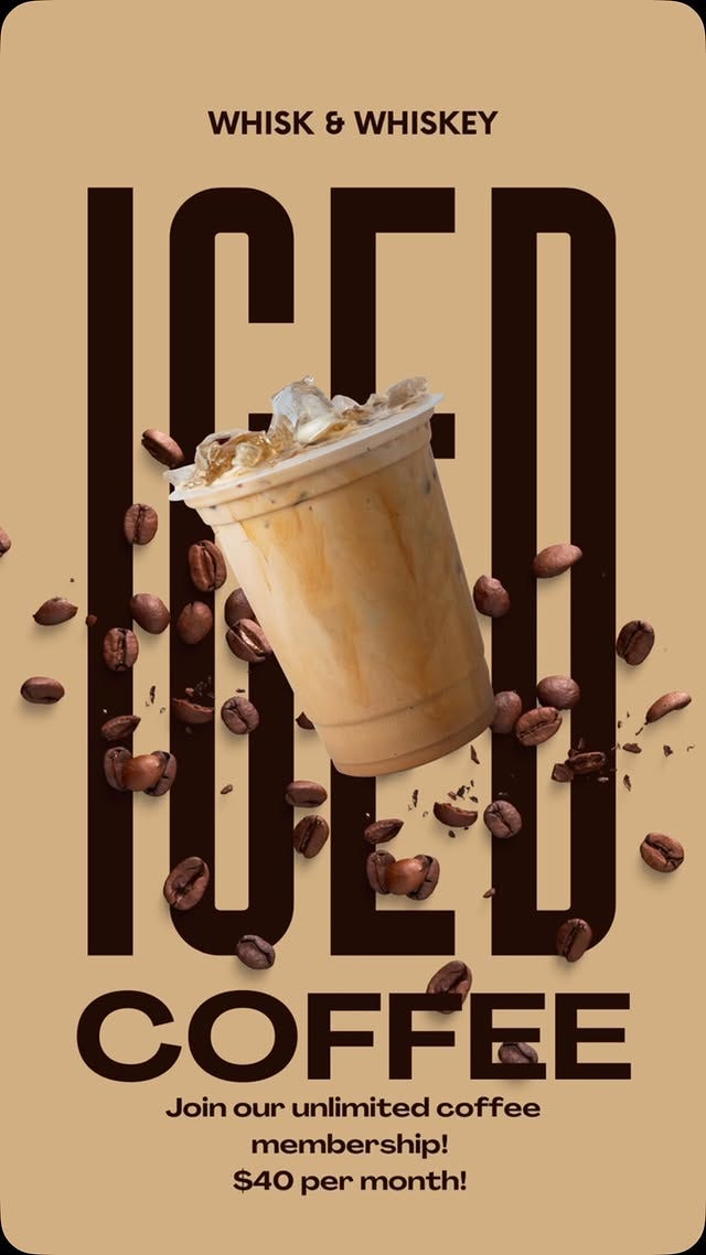 Whisk and Whiskey is offering an unlimited coffee membership just in time for iced coffee season! Join their coffee membership for $40/month and sip on your faves all day long.