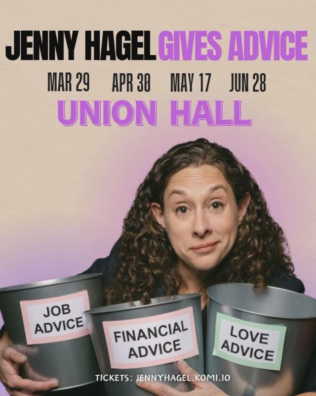 Jenny Hagel Gives Advice @ Union Hall— Wednesday, April 30th, 7:30pm: In her limited run at Union Hall, Emmy-nominated writer/performer Jenny Hagel (Late Night with Seth Meyers) invites the audience to submit written questions about their relationships, careers, and finances. Then Jenny and a special guest give their best, most professional (not professional at all) life advice. At the end, Jenny invites a real therapist on stage to tell her and her guest star if they did a good job - or if the audience should totally ignore all of the advice they heard over the past hour. This is more than just a comedy show - it's a hilarious, interactive way to watch a skilled comedian fix and/or ruin a bunch of strangers' lives! $15.64.