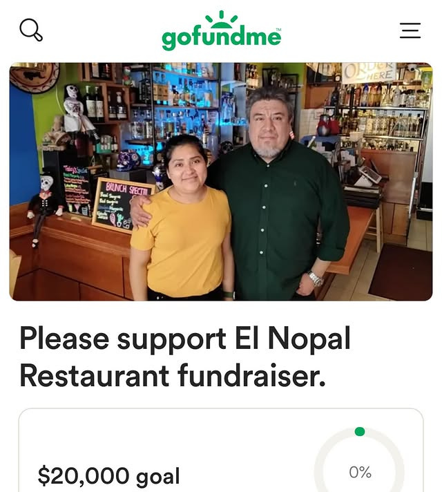 Miguel & Elsa, owners of the family-run El Nopal restaurant, had their Grubhub account hacked and money stolen. Their account is currently frozen so they can’t accept orders. Donate to their GoFundMe here.