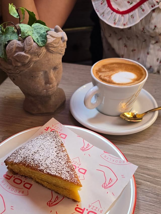 Pizza shop Brooklyn DOP is now serving coffee as well as an Orange Olive Oil Cake from a Sicilian family recipe!