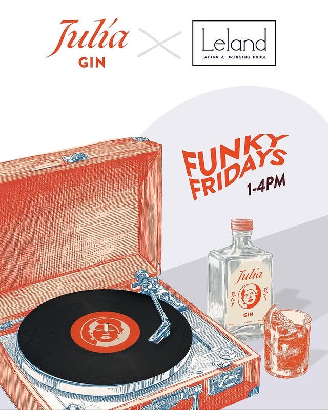 Funky Fridays @ Leland Eating and Drinking House, 1-4pm: Slide into the weekend with fresh Julia cocktails, food specials and live DJ vinyl sets at Leland! FREE entry.