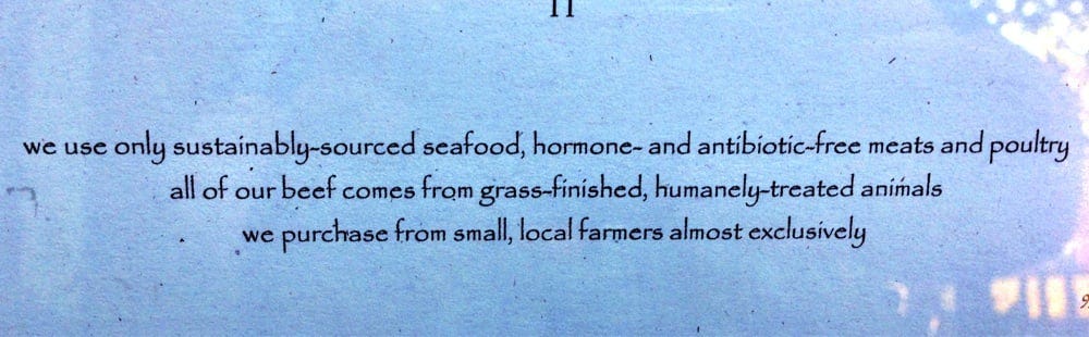 Owners David and Laura Shea sourced ingredients mainly from local farms, featuring hormone- and antibiotic-free meats and poultry, and wild-caught fish. Laura Shea ran a cheese shop upstate called Bimi's that supplied cheese to the restaurant.
