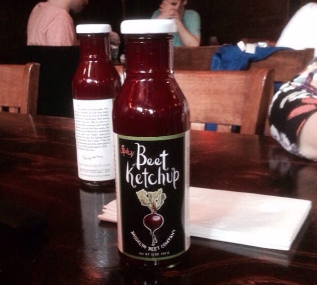 House-made condiments like beet ketchup