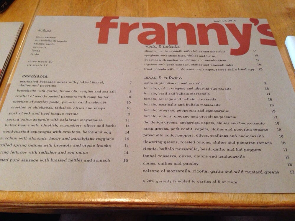 Photos below of Franny’s via Google Maps & Yelp