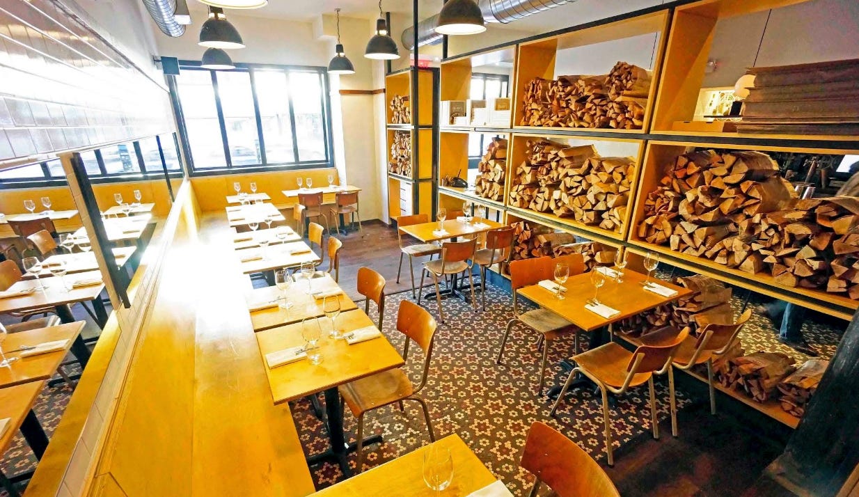 Located in a beautifully restored townhouse, the restaurant had a cozy, farmhouse atmosphere with wide-planked wooden floors, exposed brick, and a crackling fireplace.