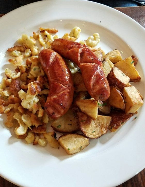 Authentic Viennese Cuisine: traditional dishes like Wiener Schnitzel, goulash, and a variety of sausages, alongside classic desserts like apple bread pudding and linzer torte. I personally loved the spaetzle!