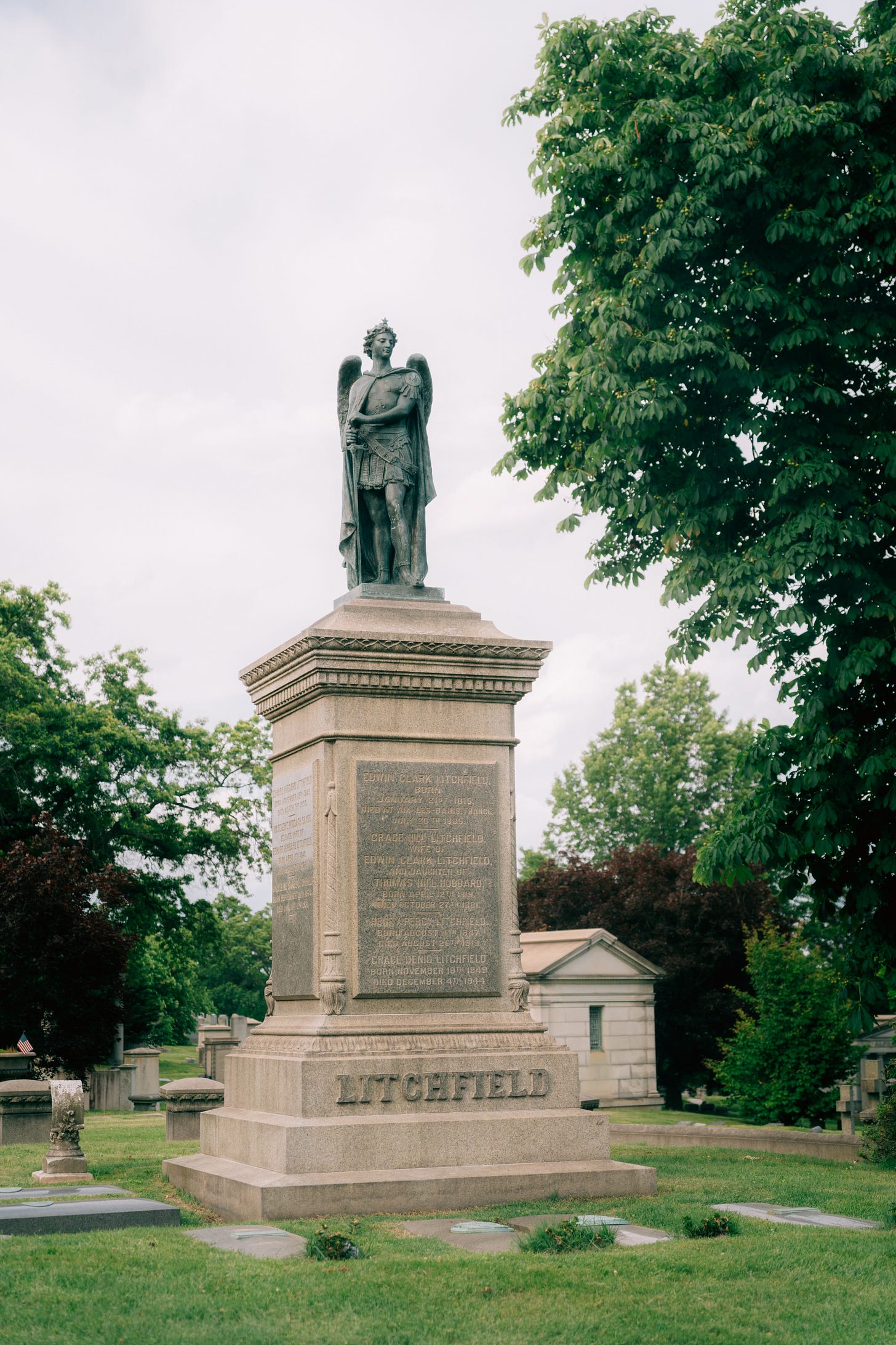To combat this, the city planned on building an extension of the sewer system to the East River where the toxic waste could be easily flushed out. Litchfield, and the other property owners along the canal, were to pay the bill for the new sewer. In the process of figuring out the financials for the project, it came to light that the Litchfield’s and the BIC had not been paying their fair share of taxes. When it was all totaled out, the Litchfield’s owed the city $950,000, which the city kindly tagged with a 12 percent interest rate. Edwin eventually bringing in his son, Edward, to help him out. Edward would sort out the tax mess for his father, speaking with Mayor Seth Low about the matter. Edward was able to work out a deal that got the city to back off. In 1881, Grace would pass away and in 1883 the Litchfield’s would be forced to vacate their estate by the park. Edwin would pass away in in 1885 while in France. Litchfield’s dreams began to crumble before his death, as the Gowanus Canal became polluted and the home that was his prized gem, Grace Hill, had been given to the public. He is buried on the family plot in Greenwood Cemetery atop Battle Hill, parallel to the hill from which he once overlooked his once bustling empire.