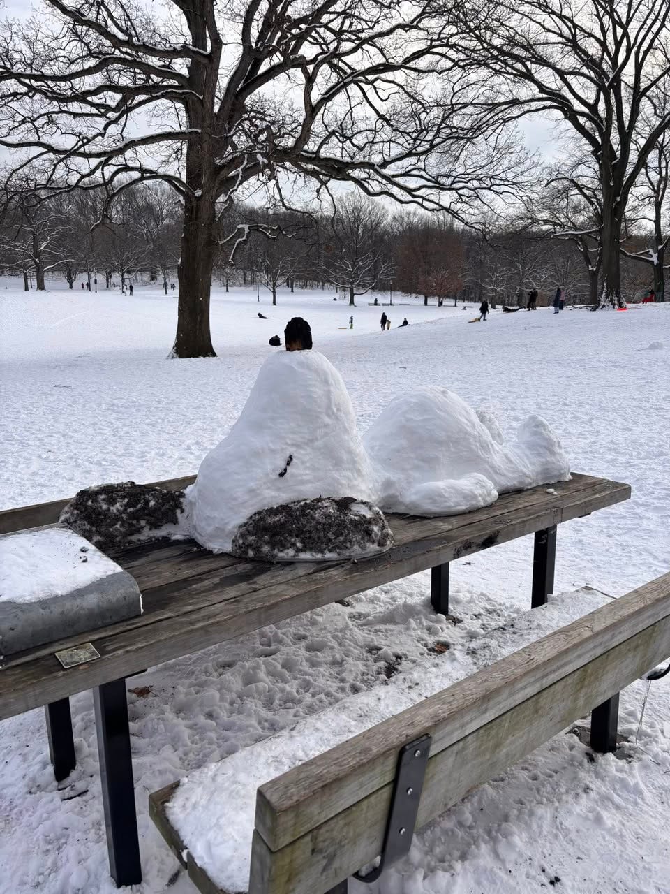 Check out this adorable snowy Snoopy sculpture created by an unknown artist in Prospect Park! Thanks to Alex Weider on Park Slope Together for the photo.