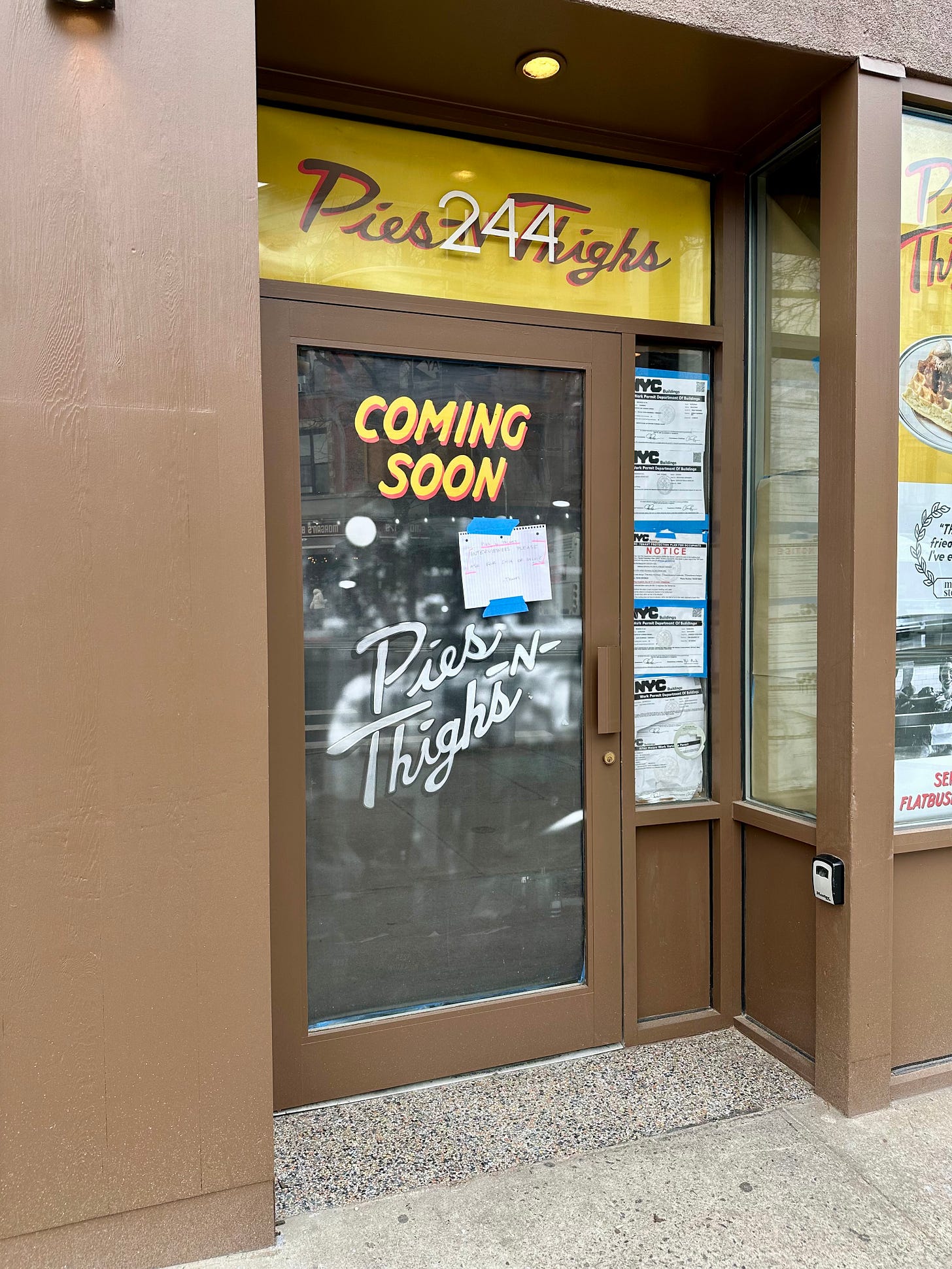 Pies ‘n’ Thighs opens in Park Slope on Wednesday, April 1st, and is located at 244 Flatbush Ave (at 6th Ave), Brooklyn, NY 11217 (1 block from Barclays Center)