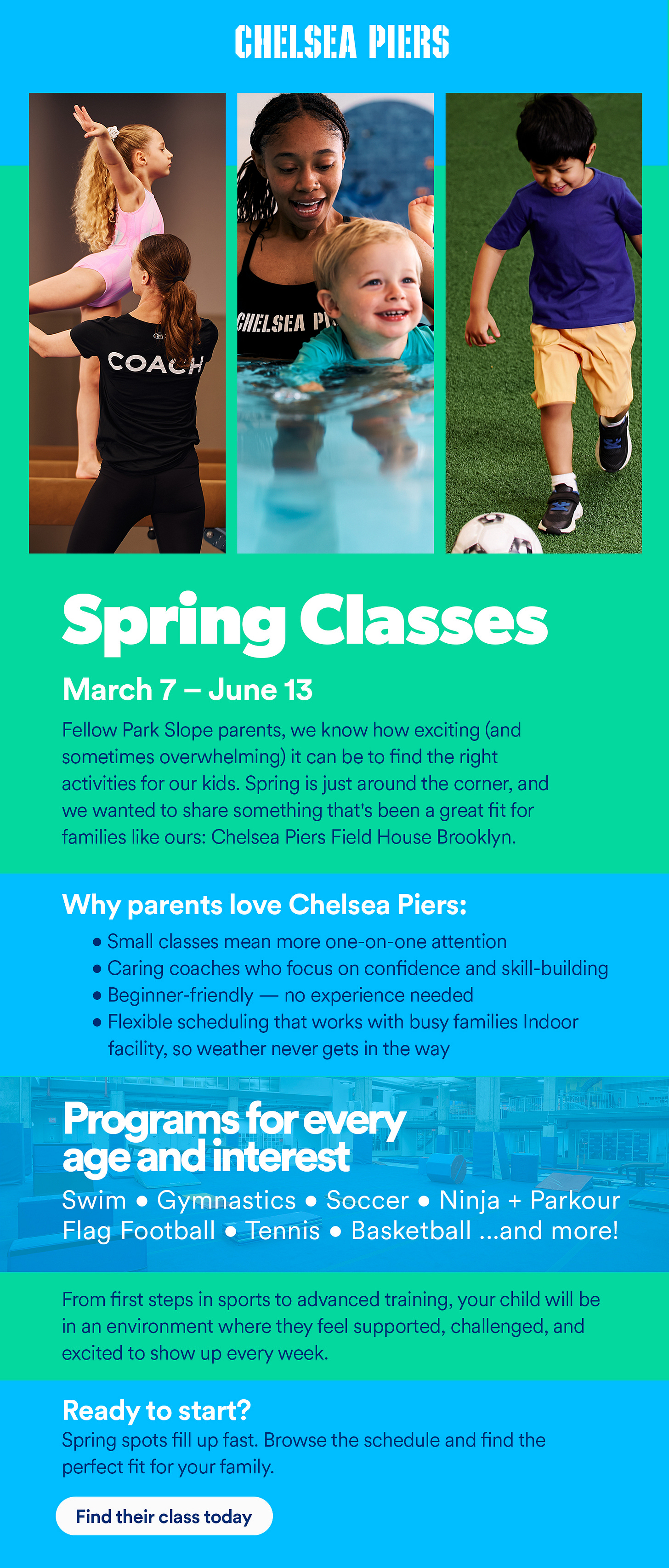 Spring classes at Chelsea Piers Brooklyn are open